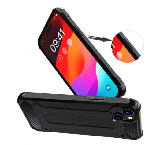 Силиконов гръб TPU Spigen Hybrid с твърда част за Apple iPhone 15 (6.1) - черен