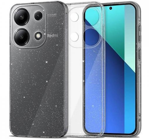 Силиконовият кейс има класически външен вид, но с добавен брокат. Той е изработен от TPU материал и изглежда страхотно благодарение на по-дебелата си рамка. Калъфите са с дебелина 2 мм. Калъфите не увеличават теглото и размера на смартфона. Релефните пространства за бутоните и прецизните изрези за портовете улесняват използването на телефона. Съвместим е с моделите: Xiaomi Redmi 15C