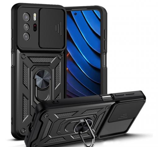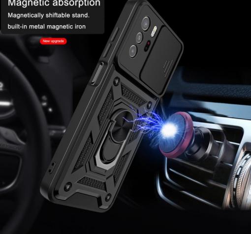 Удароустойчив гръб TPU кейс Slide Camera Case Magnetic Finger Ring Car Holder за Xiaomi Redmi Note 10 Pro 5G - черен