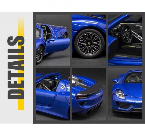 - Насладете се на емблематичната спортна визия PORSCHE 918 SPYDER с този детайлен умален модел в мащаб 1:24.