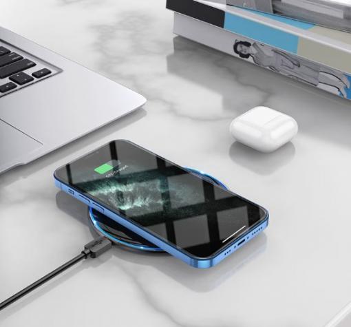 Зарядното устройство е съвместимо с всички модели устройства (смартфони, таблети, airpods) и предлага ефективно и бързо зареждане (15W).