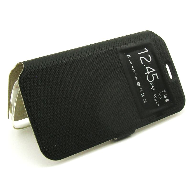 Кожен калъф Flip тефтер S-View със стойка за Lenovo Moto E3 - черен / ромбове / Flexi