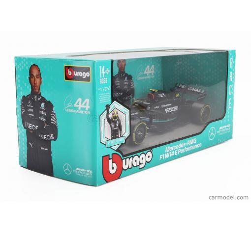 Метална кола Mercedes-AMG F1 W14 E Performance Team Mercedes-AMG Petronas Formula One Team Lewis Hamilton Season 2023 with standing pilot figure - Bburago 1:24