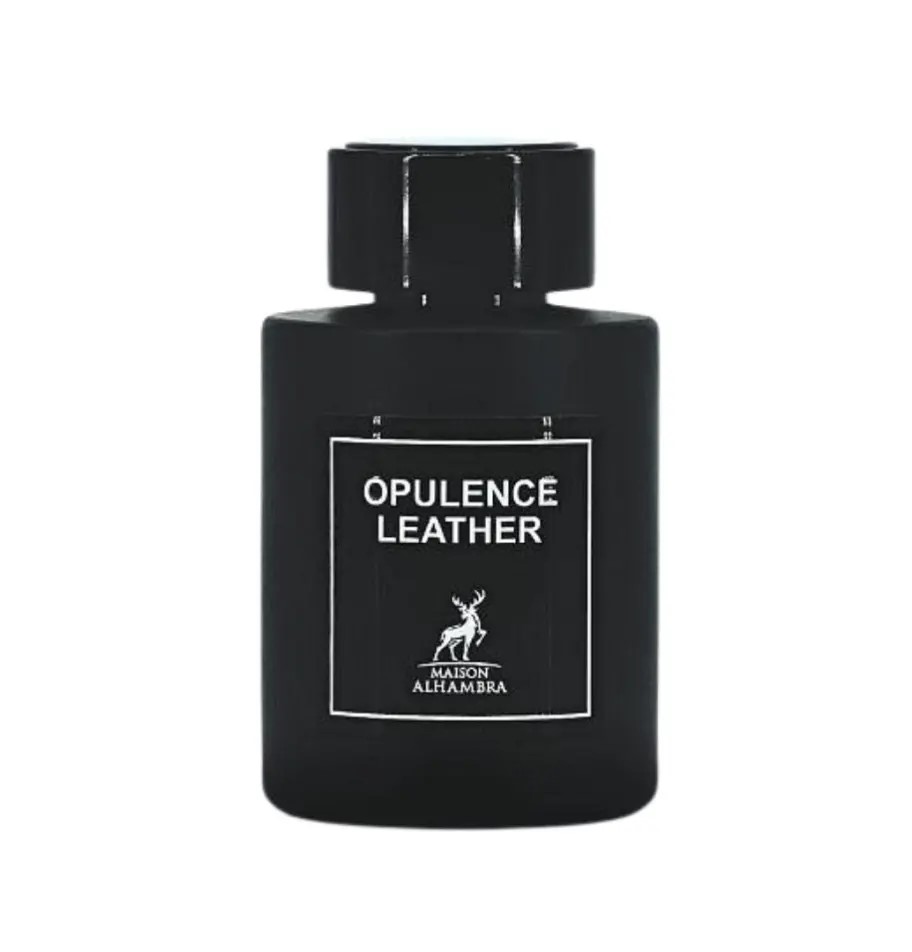 Maison Alhambra Opulence Leather е смел и луксозен аромат с отличителен кожен акцент, който се съчетава безпроблемно с богати флорални, пикантни и земни нотки. Взаимодействието на кардамон и жасмин в сърцевината отстъпва място на интензивната дълбочина на черна кожа, пачули и кехлибар в основата. Резултатът е пищен, уверен аромат, идеален за тези, които ценят интензивните и силни аромати.