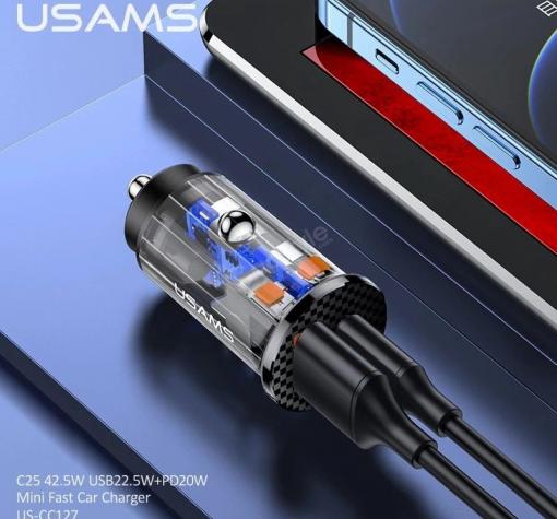 Универсално зарядно за кола USAMS US-CC127 42.5W USB 22.5W+PD 20W Mini Fast Car Charger