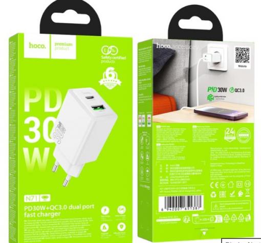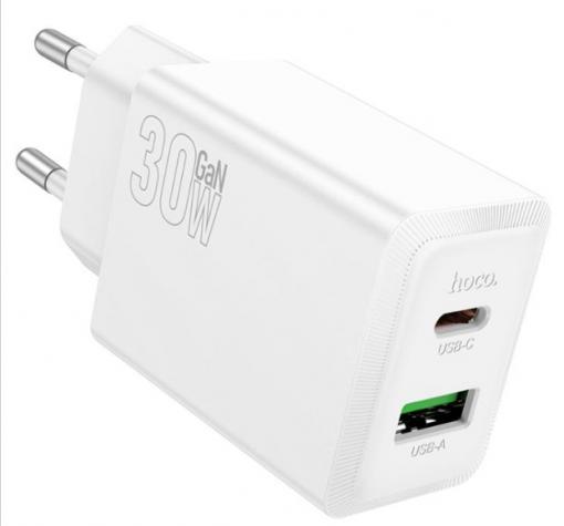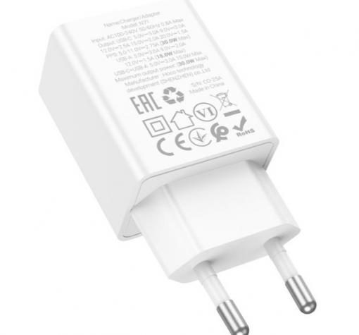 Универсално зарядно устройство / адаптер / HOCO N71 Nuevo PD30W+QC3.0 / Dual Port Charger / USB & Type C - бяло