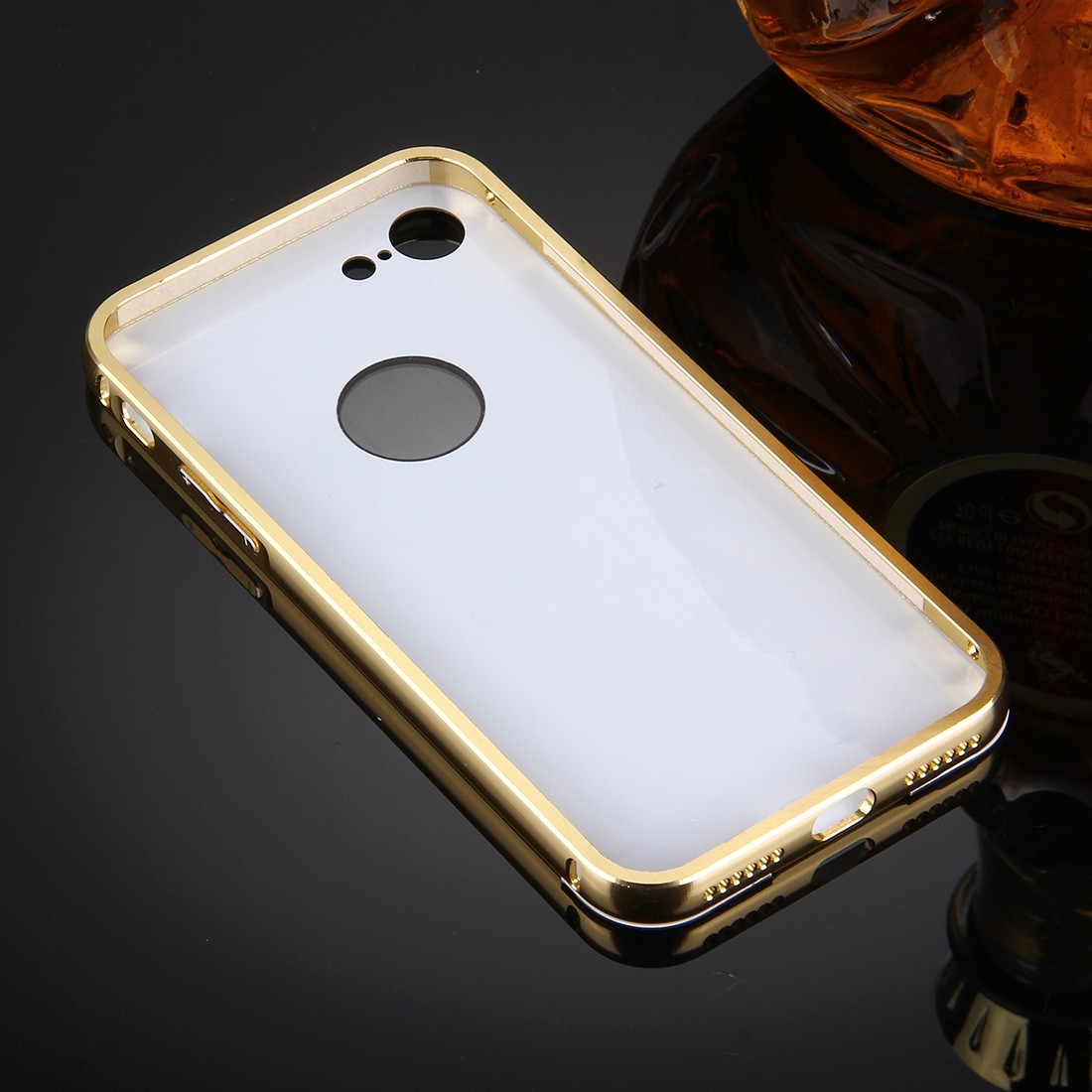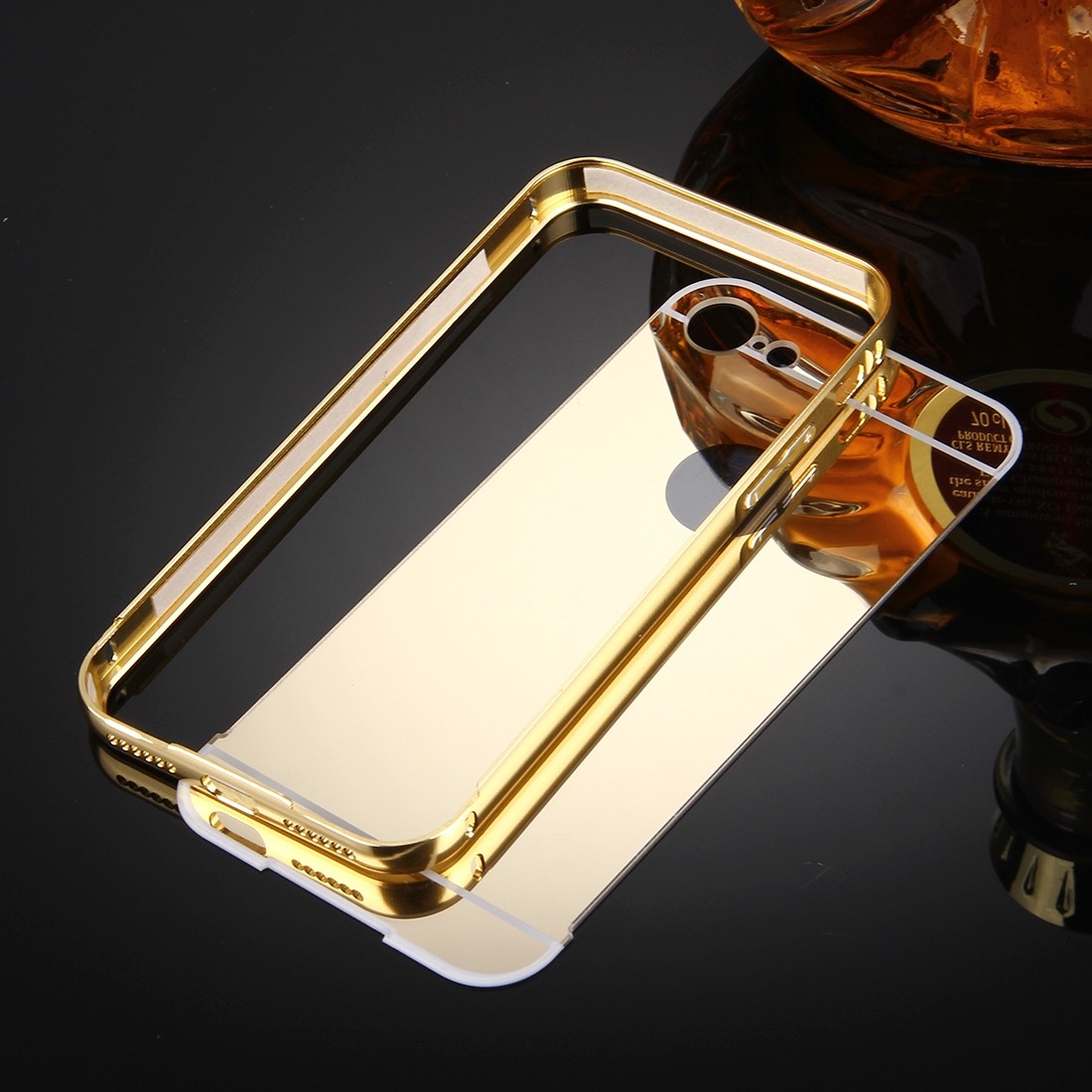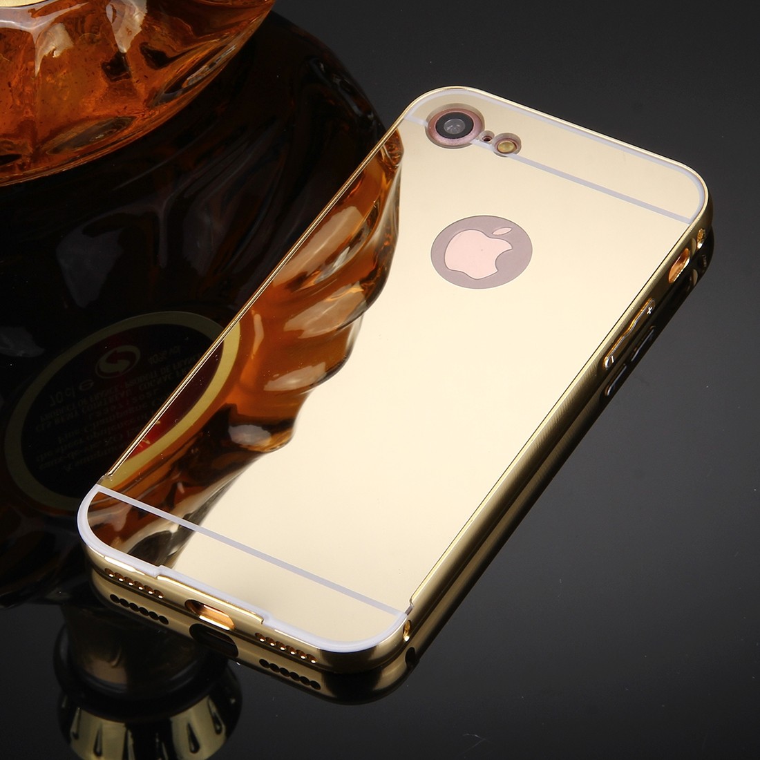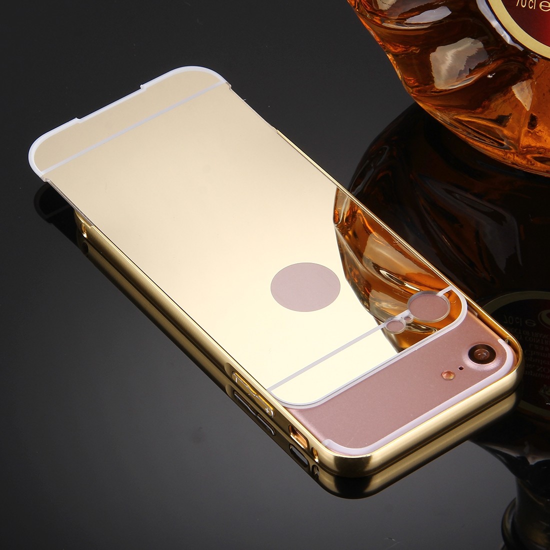 Луксозен алуминиев бъмпер с твърд гръб за Apple iPhone 7 - огледален / златист