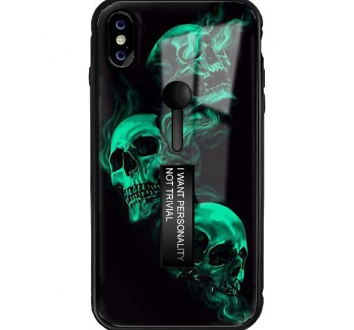 Луксозен гръб с подвижен пръстен/държач за Apple iPhone X / iPhone XS - черепи