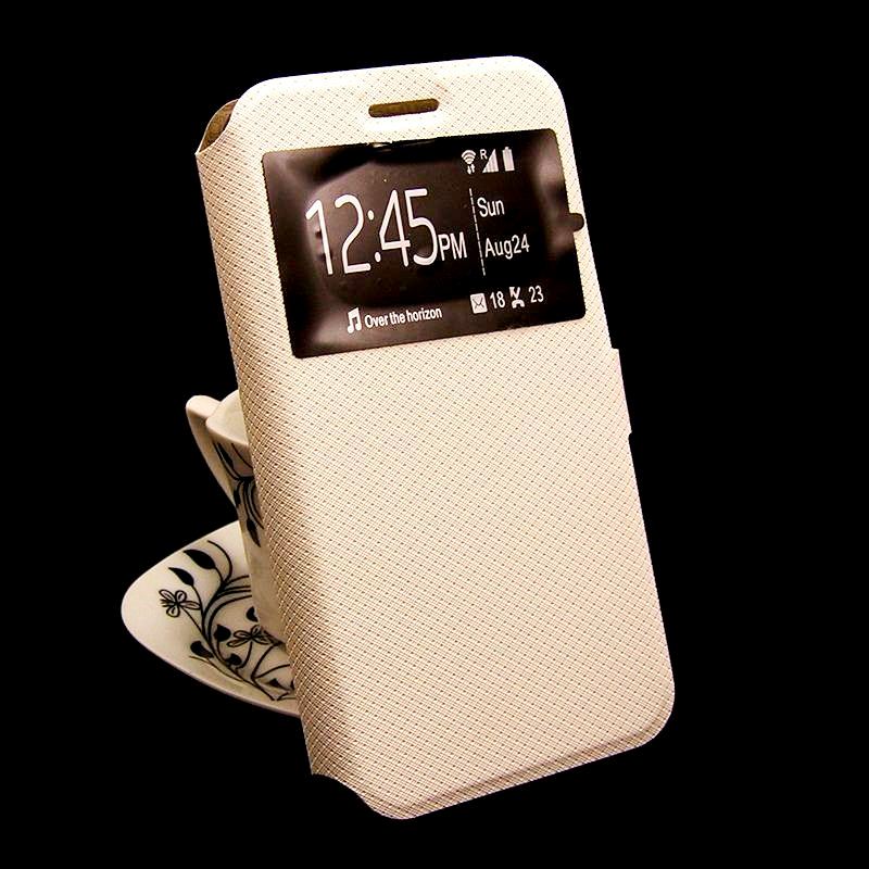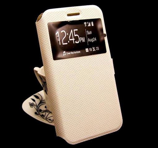 Кожен калъф Flip тефтер S-view със стойка за Huawei P8 Lite - бял / Flexi