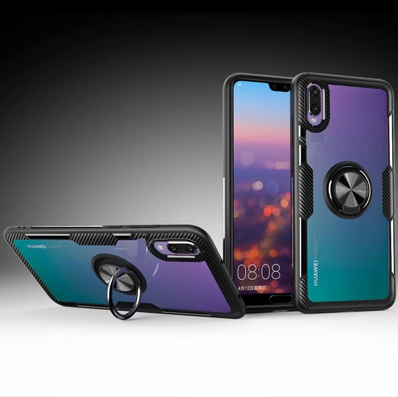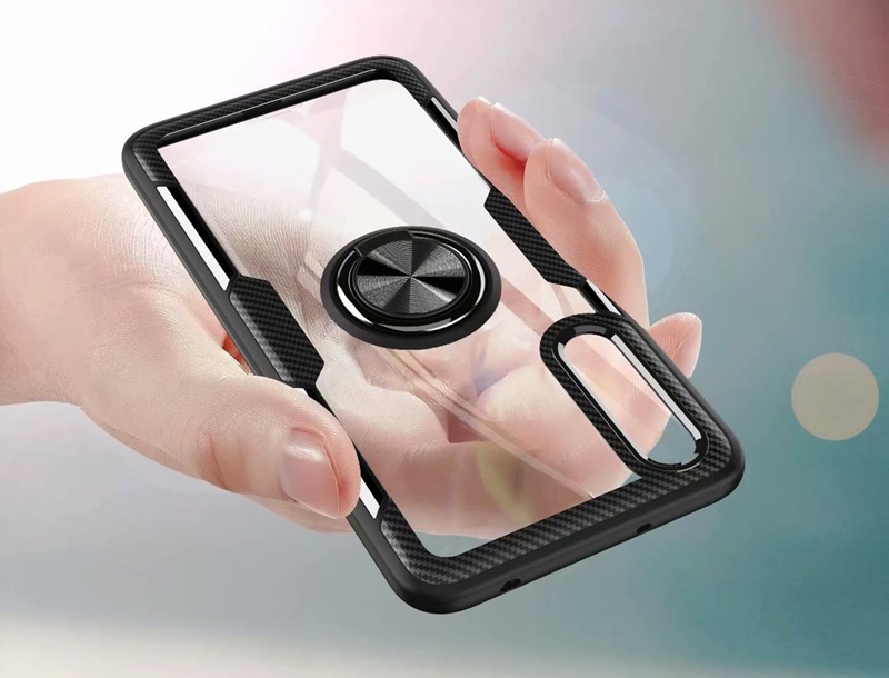 Луксозен гръб Hybrid с магнитна стойка и силиконов кант за Huawei Y5 2019 - прозрачен / черен кант