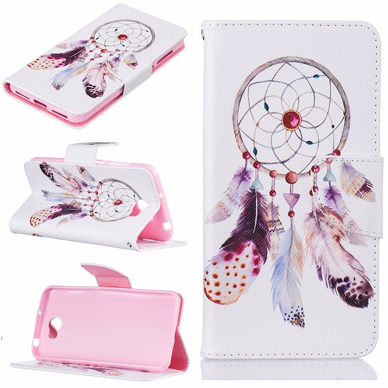 Кожен калъф Flip тефтер Flexi със стойка за Huawei Y5 II / Y5 2 / Y6 II Compact - бял / капан за сънища