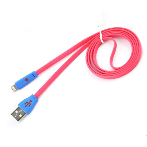 USB кабел / USB Charging Cable за Apple iPhone 5 / iPhone 5S / iPhone 5C / iPhone 6 - цикламен / Smiley Face