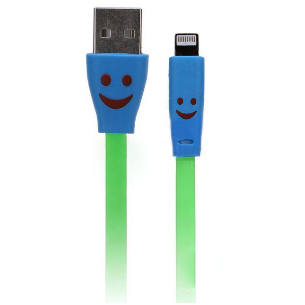 USB кабел / USB Charging Cable за Apple iPhone 5 / iPhone 5S / iPhone 5C / iPhone 6 - зелен / Smiley Face