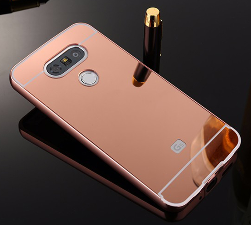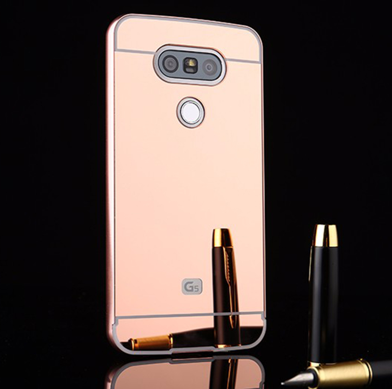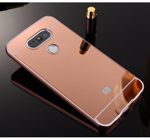 Луксозен алуминиев бъмпер с твърд гръб за LG G5 - огледален / Rose Gold