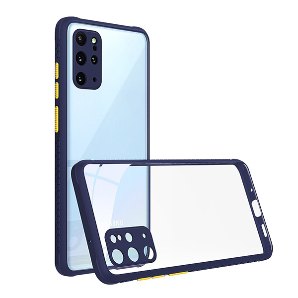 Луксозен твърд калъф / гръб Shockproof за Samsung Galaxy A20s - прозрачен /тъмно син кант