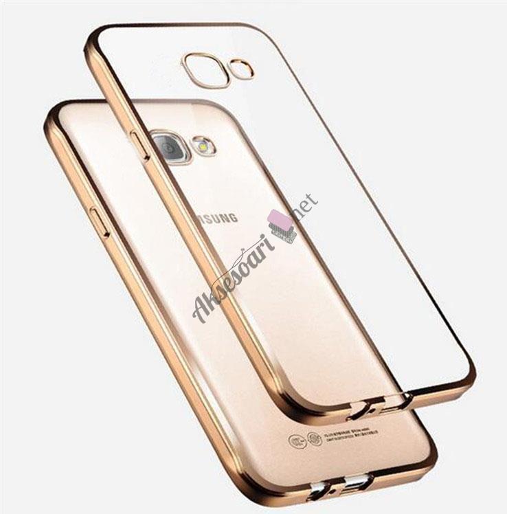 Луксозен твърд гръб за Samsung Galaxy A3 2016 A310 - прозрачен / златист кант