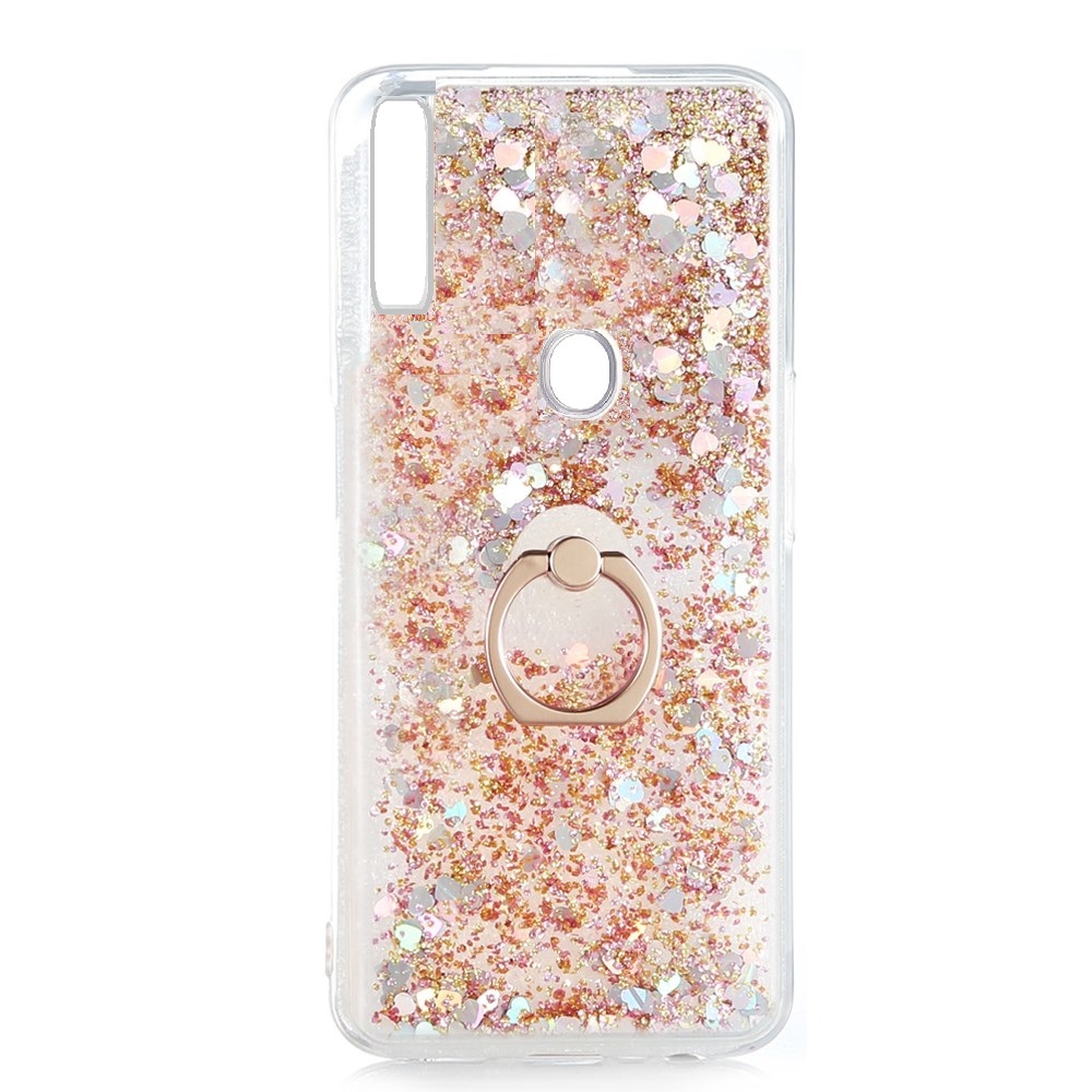 Луксозен твърд гръб 3D Water Case със стойка Ring за Samsung Galaxy A72 5G - прозрачен / течен гръб с брокат / сърца / златист