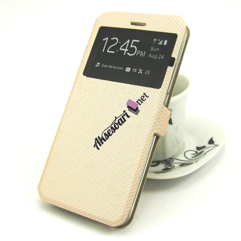 Кожен калъф Flip тефтер S-View със стойка за Samsung Galaxy J3 / Galaxy J3 2016 J320 - златист / ромбове / Flexi