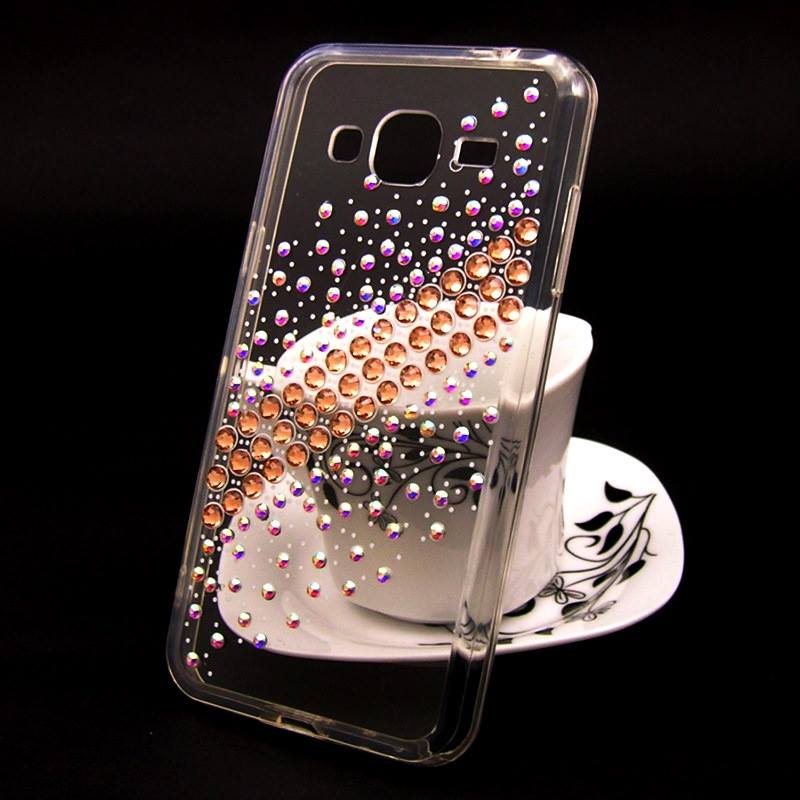 Луксозен силиконов калъф / гръб / TPU с камъни за Samsung Galaxy J3 / J3 2016 J320 - прозрачен / многоцветни камъни