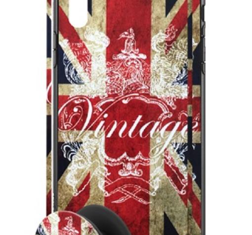 Луксозен твърд гръб 3in1 със стъклен протектор и Popsocket за Samsung Galaxy J6 Plus 2018 - Retro British Flag