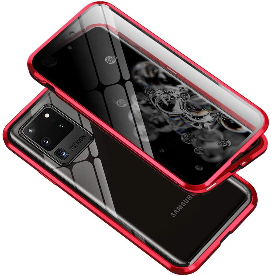 Магнитен калъф Bumper Case 360° FULL за Samsung Galaxy S20 - прозрачен / червена рамка