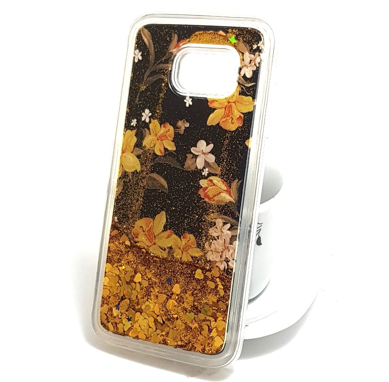 Луксозен твърд гръб 3D за Samsung Galaxy S7 Edge G935 - нарциси / жълт брокат