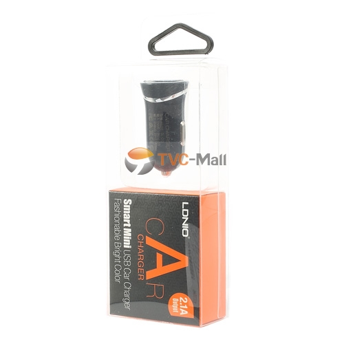Mини USB зарядно за кола LDNIO / DC 12V -24V / с USB порт 5V / 2.1A черно с бяла лента - Samsung Galaxy S4, Galaxy S5, HTC, LG, Nokia, iPhone, Alcatel, Prestigio, Huawei, Privileg, ZTE
