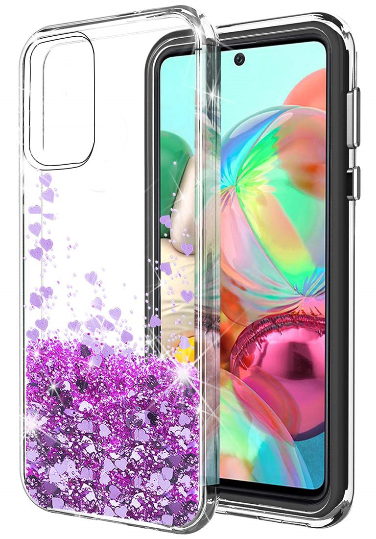 Луксозен твърд гръб 3D Water Case за Xiaomi Redmi Note 10 Pro - прозрачен / течен гръб / сърца / лилав брокат