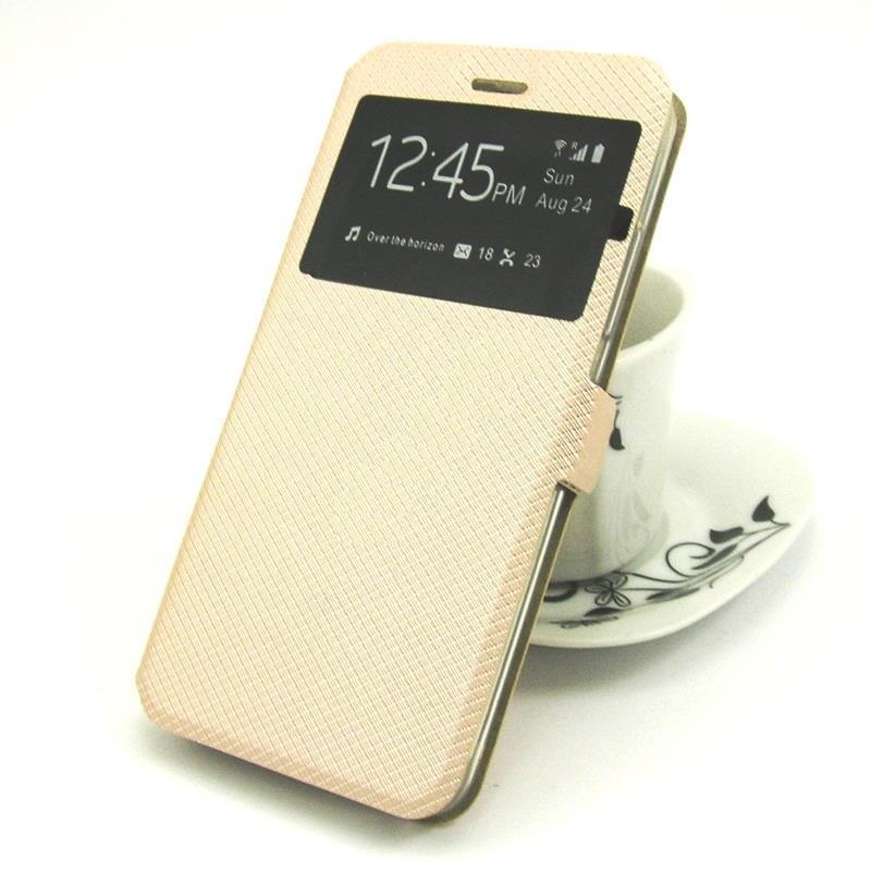 Кожен калъф Flip тефтер S-View със стойка за Xiaomi Redmi Note 5A - златист / ромбове / Flexi