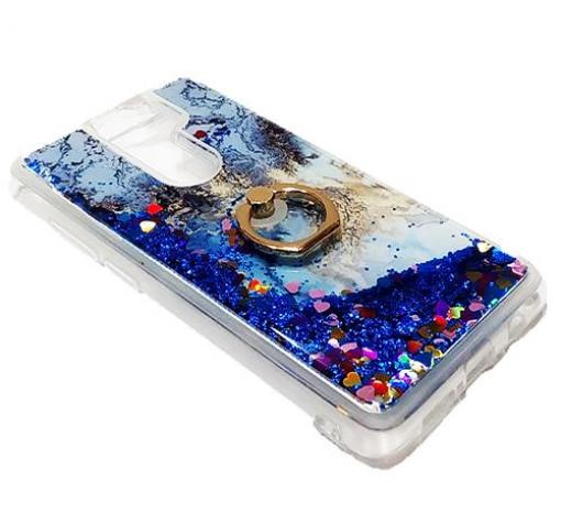 Луксозен силиконов калъф / гръб / tpu 3D Water Case със стойка за Xiaomi Redmi Note 8 Pro - мрамор / син брокат и сърца