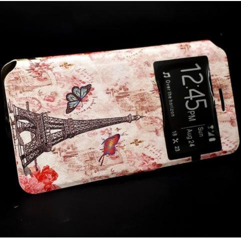 Кожен калъф Flip тефтер S-View със стойка за Xiaomi Redmi Note 8T - Айфелова кула / пеперуди / Flexi