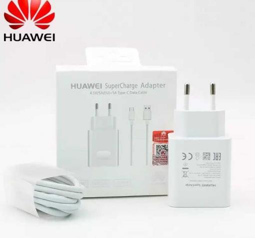 Комплект зарядно устройство - мрежови адаптер(66W) и кабел(USB Type-A/USB Type-C) с функция за бързо зареждане Huawei SuperCharge.