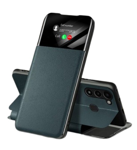 Луксозен кожен калъф Smart View Cover за Samsung Galaxy A03 - тъмнозелен