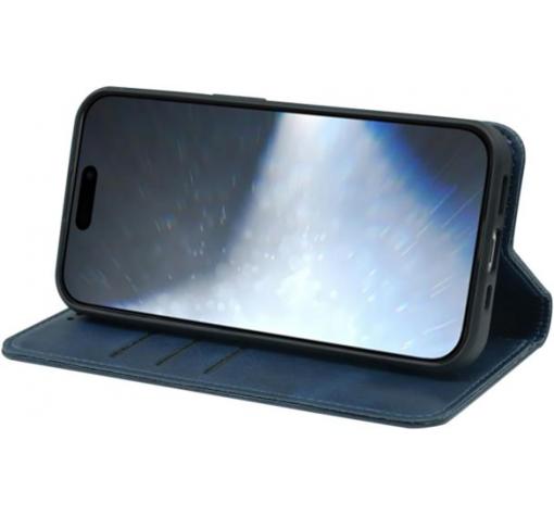 Кожен калъф Flip тефтер Magnetic Book със стойка за Apple iPhone 17 Pro (6.3) - тъмносин