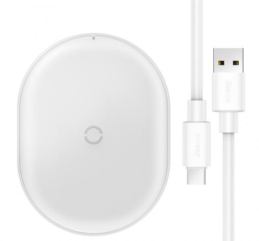Оригинално универсално зарядно за безжично захранване BASEUS Qi EPP Cobble 220V 15W - бяло