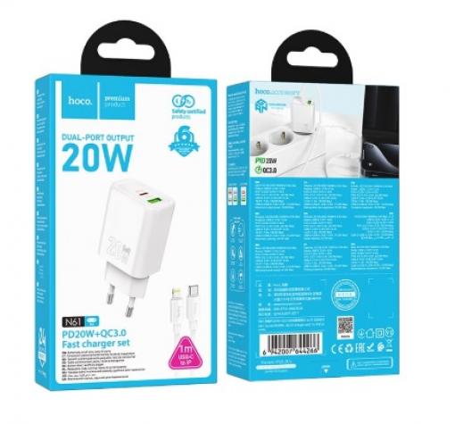 Зарядно устройство HOCO N61 220V 20W / Type C to Lightning - бяло