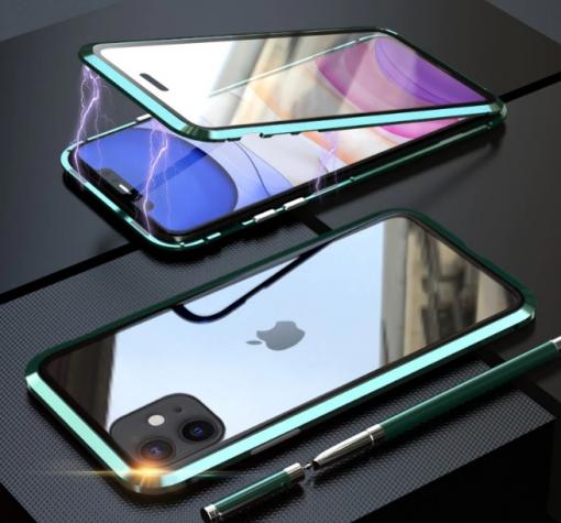 Магнитен калъф Bumper Case 360° FULL за Apple iPhone 11 6.1'' - прозрачен / зелена рамка