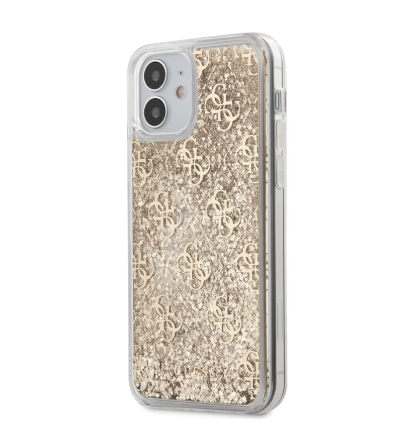 Луксозен гръб 3D Guess Glitter Case за Apple iPhone 12 mini 5.4" - прозрачен / златист брокат
