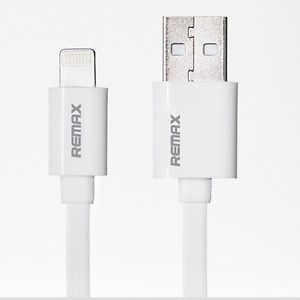USB кабел REMAX за Apple iPhone 5 / iPhone 5S / iPone 6 / iPhone 6 plus / iPod Touch 5 / iPhone 5C / iPod Nano 7 - бял / плосък