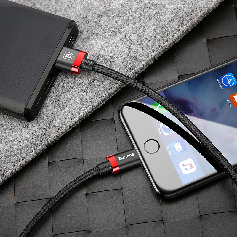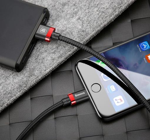 Оригинален USB кабел BASEUS Golden Belt 2A за зареждане и пренос на данни 2в1 1m за Apple iPhone 7 / iPhone 8 / iPhone X - черен с червено