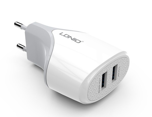 Оригинално зарядно устройство LDNIO A2268 220V с два USB порта 5V / 2.1A за Apple iPhone 5 / iPhone 5S / iPhone SE / iPhone 6 / iPhone 6 Plus / iPhone 7 - бяло и сиво