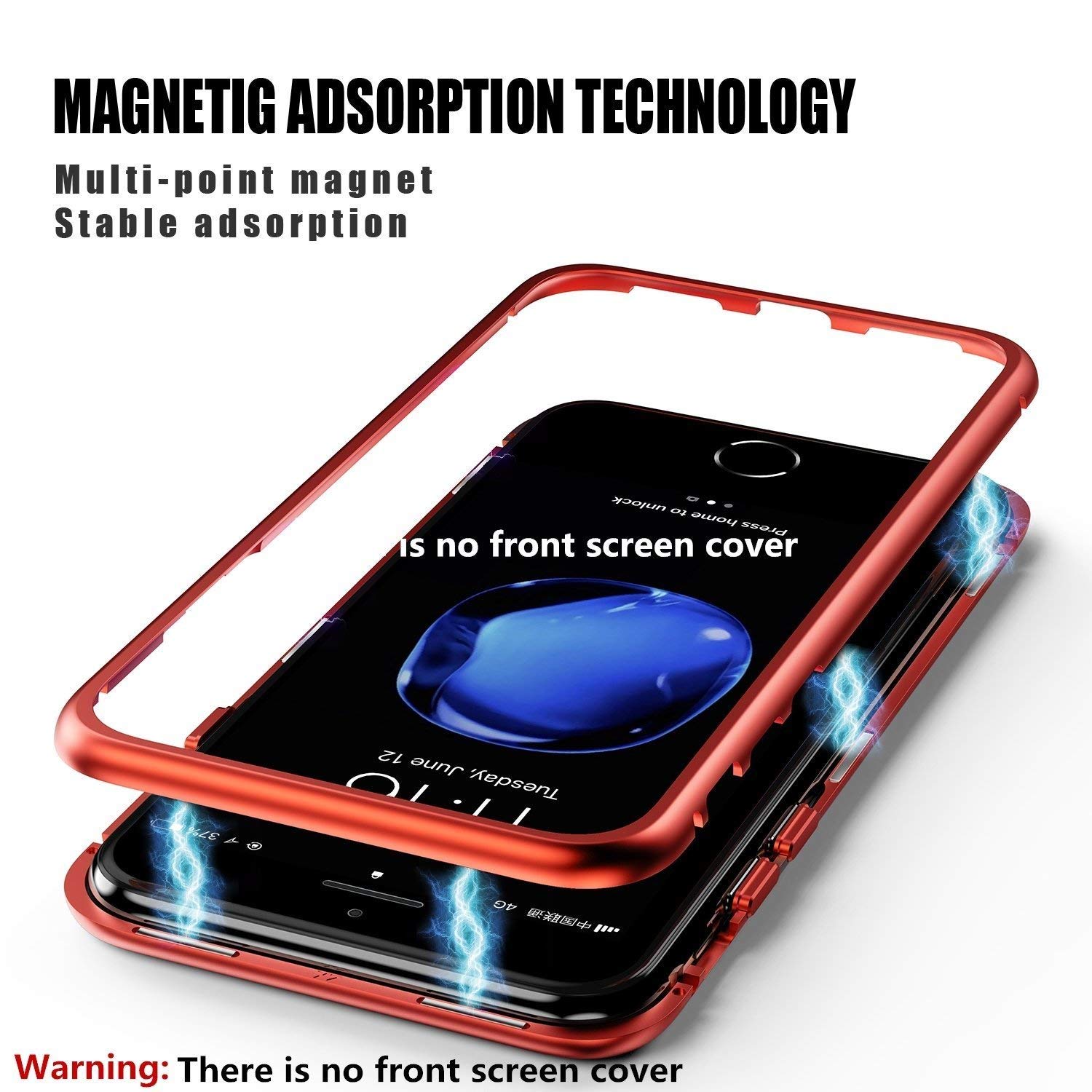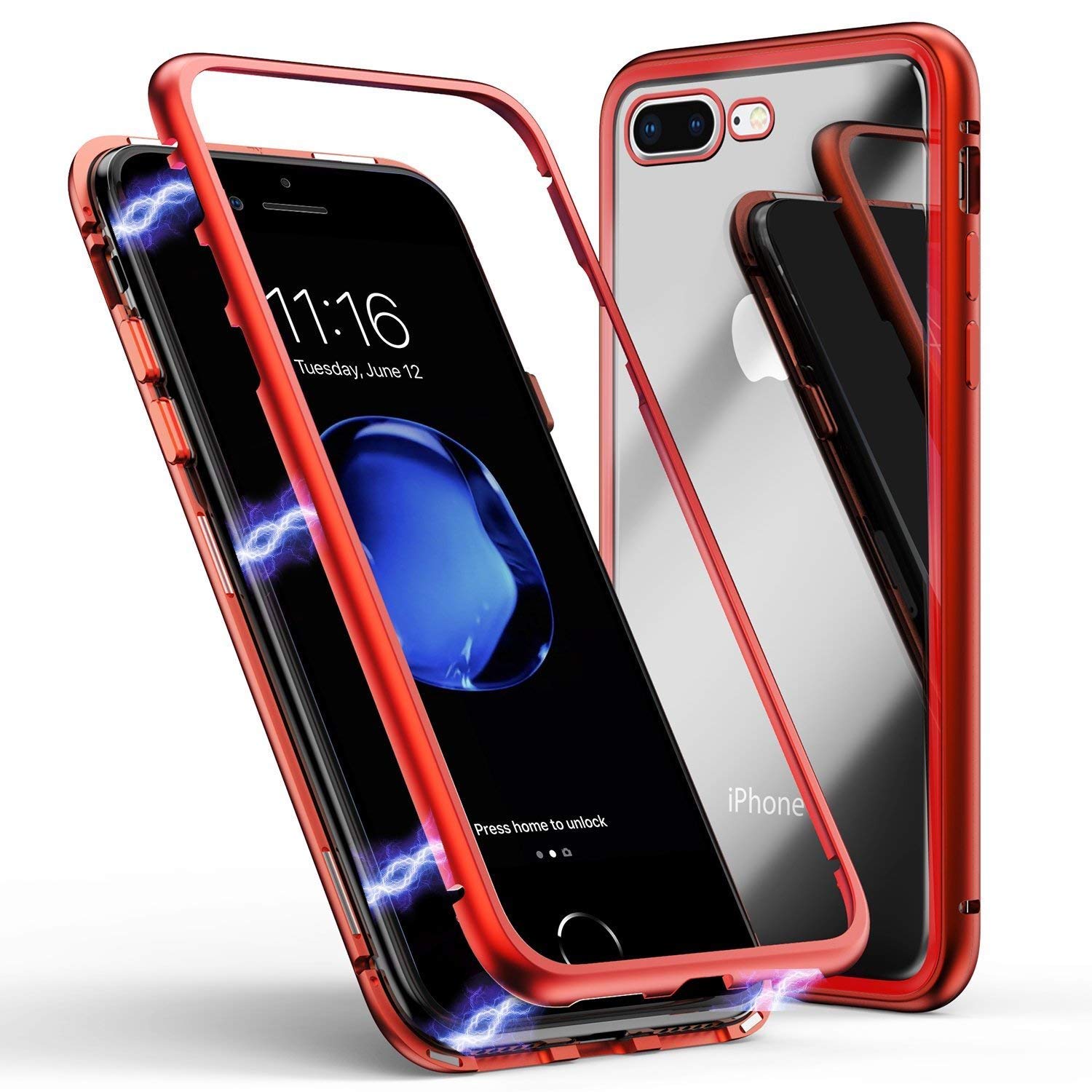 Магнитен калъф Bumper Case 360° FULL за Apple iPhone 7 / iPhone 8 - прозрачен / червена рамка