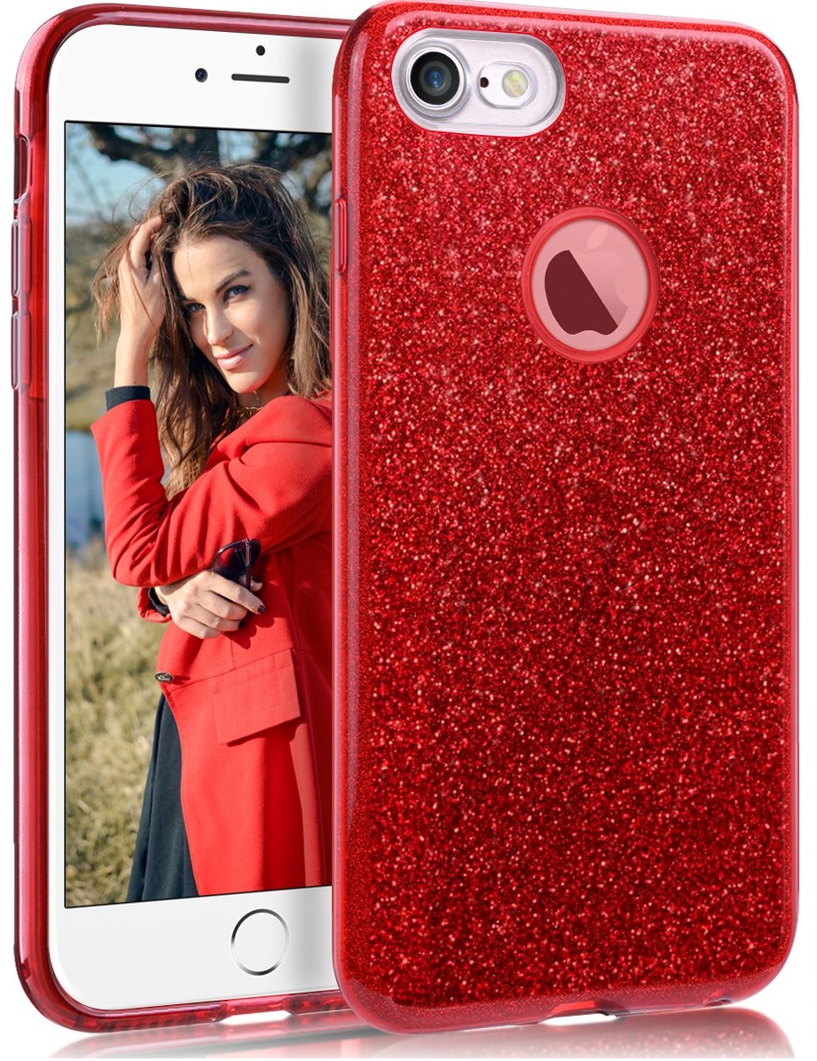 Силиконов калъф / гръб / TPU за Apple iPhone 7 / iPhone 8 - червен / брокат