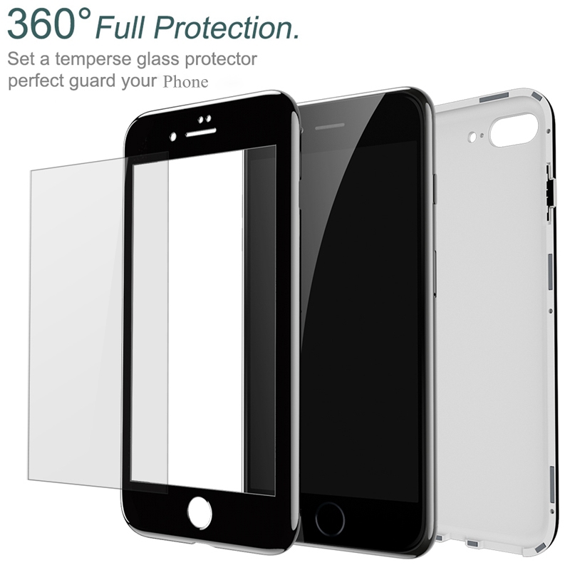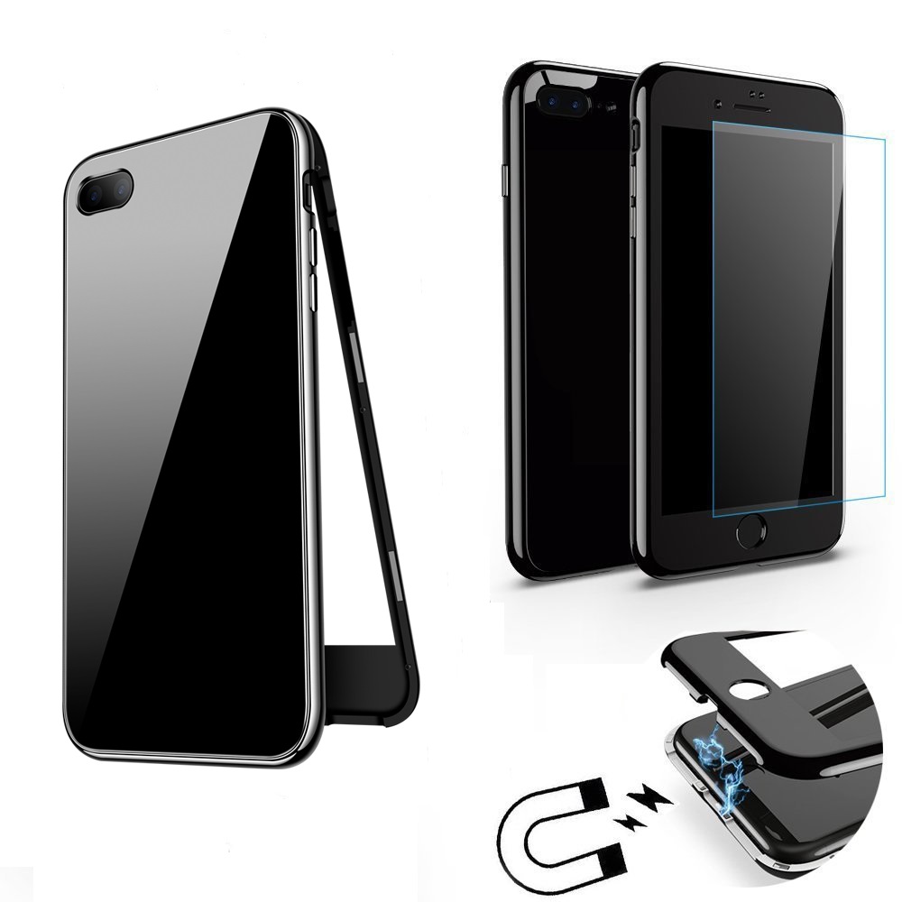 Магнитен калъф Bumper Case 360° FULL със стъклен протектор за Apple iPhone 7 Plus / iPhone 8 Plus - черен
