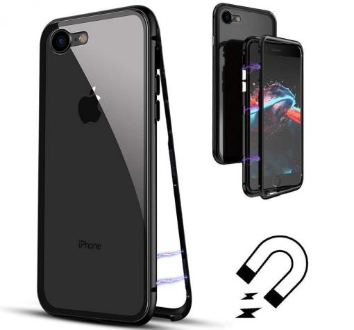 Магнитен калъф Bumper Case 360° FULL за Apple iPhone 7 Plus / iPhone 8 Plus - прозрачен / черна рамка