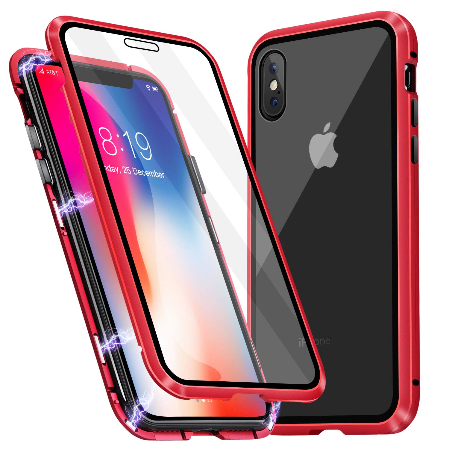 Магнитен калъф Bumper Case 360° FULL за Apple iPhone XS Max - прозрачен / червена рамка