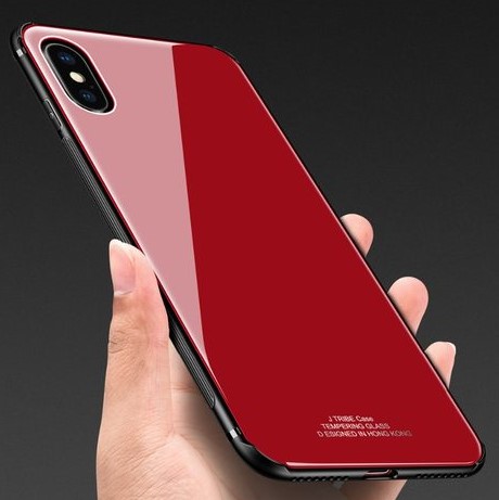 Луксозен стъклен твърд гръб за Apple iPhone XS Max - червен