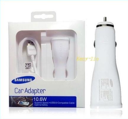 Оригинално USB зарядно за кола 12V - 10.6W Samsung Galaxy Note 3 N9000 / Note III N9005 - бяло