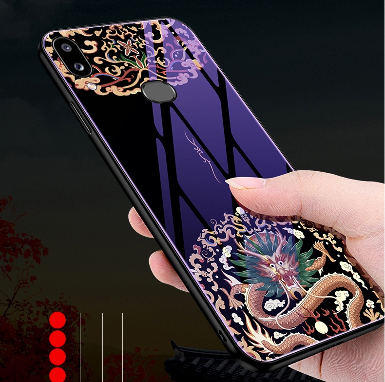 Луксозен стъклен твърд гръб за Huawei Y6 2019 - дракон