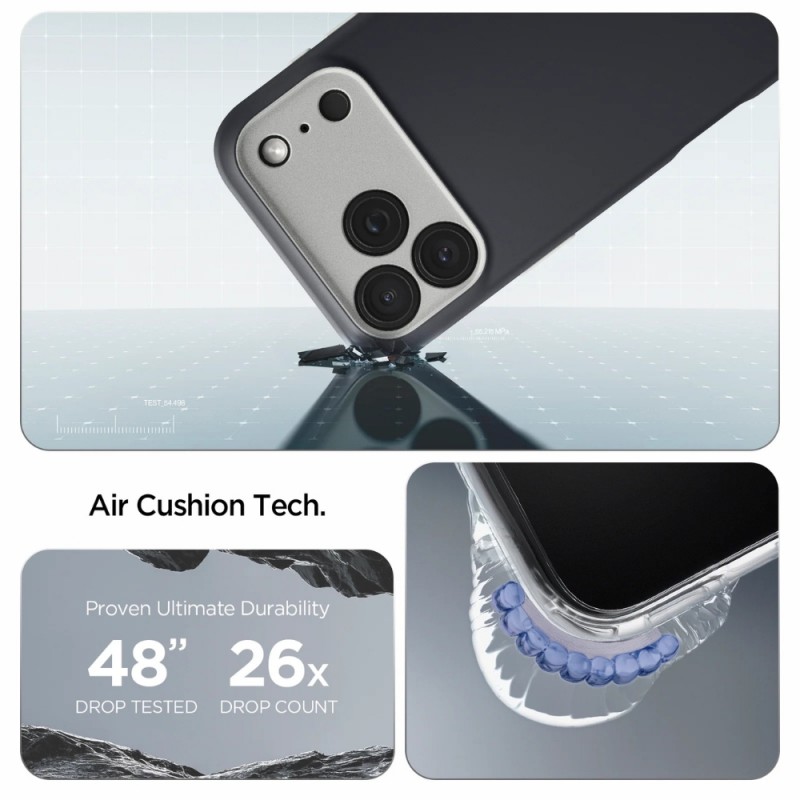 - Подсилените ъгли с въздушни възглавници (Air Cushion) ефективно абсорбират ударите, осигурявайки допълнителна защита срещу изпускане.